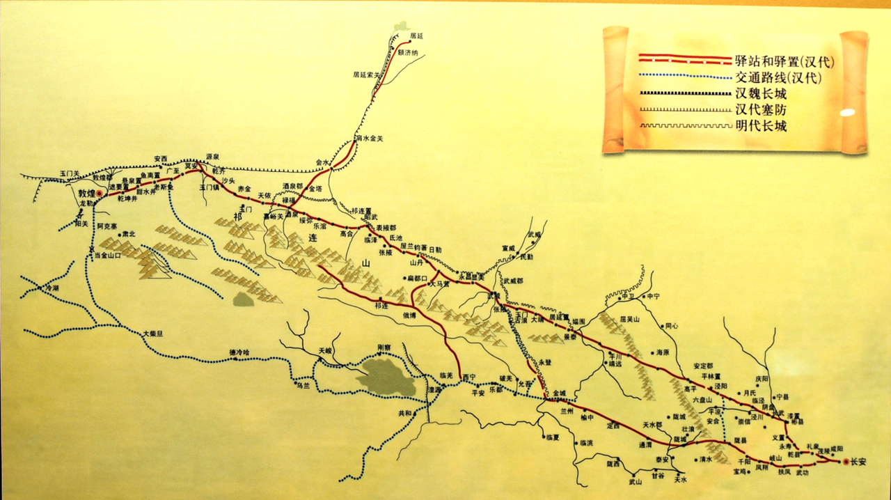 众所周知,张骞通西域,从公元前138 年出行到公元前126年返回,用了13年时间。但是其中的十多年里并不在路上,而是在往返酒泉某地时,被匈奴所羁留,大部分时间是在匈奴度过的。紧接着,张骞第二次出使西域,霍去病远征河西设四郡据两关、李广利远征大宛(前104-前101年)、汉朝派使者校尉屯田渠犁、设立西域都护府(前 60年)等,中原与西域的道路得以畅通。在这种情况下,长安到敦煌需要多长时间?