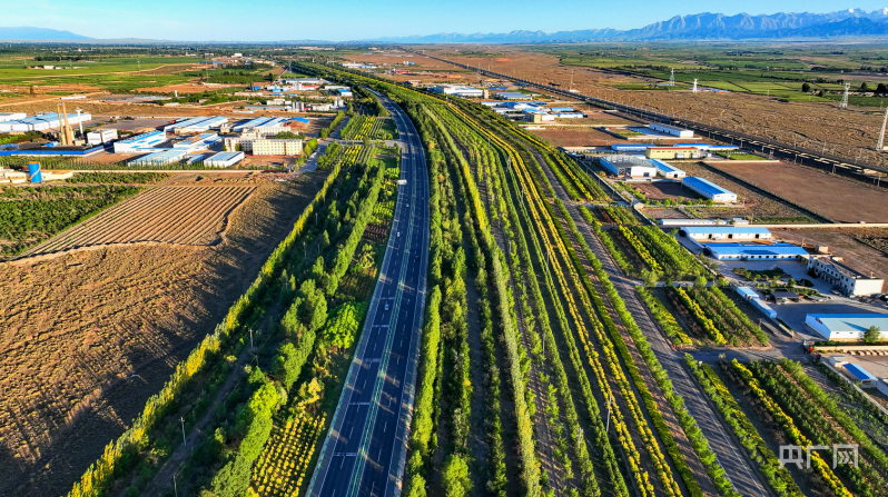 民乐县工业园区交通大林带(央广网发 吴开春 摄)