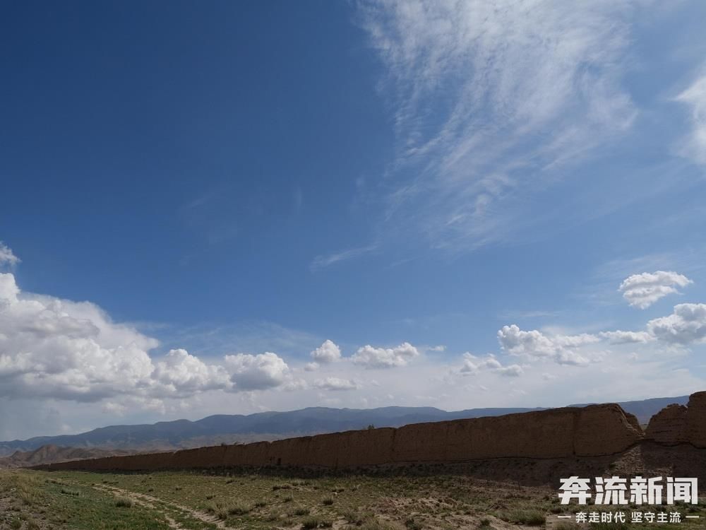 祁连山下,甘肃山丹汉明长城犹如一条巨龙蜿蜒盘旋在漫漫戈壁。