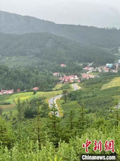 图为甘肃临夏州太子山旅游大通道,山峦重叠,绿草如茵,乡村掩隐在林木中。(资料图)中新社记者 闫姣 摄