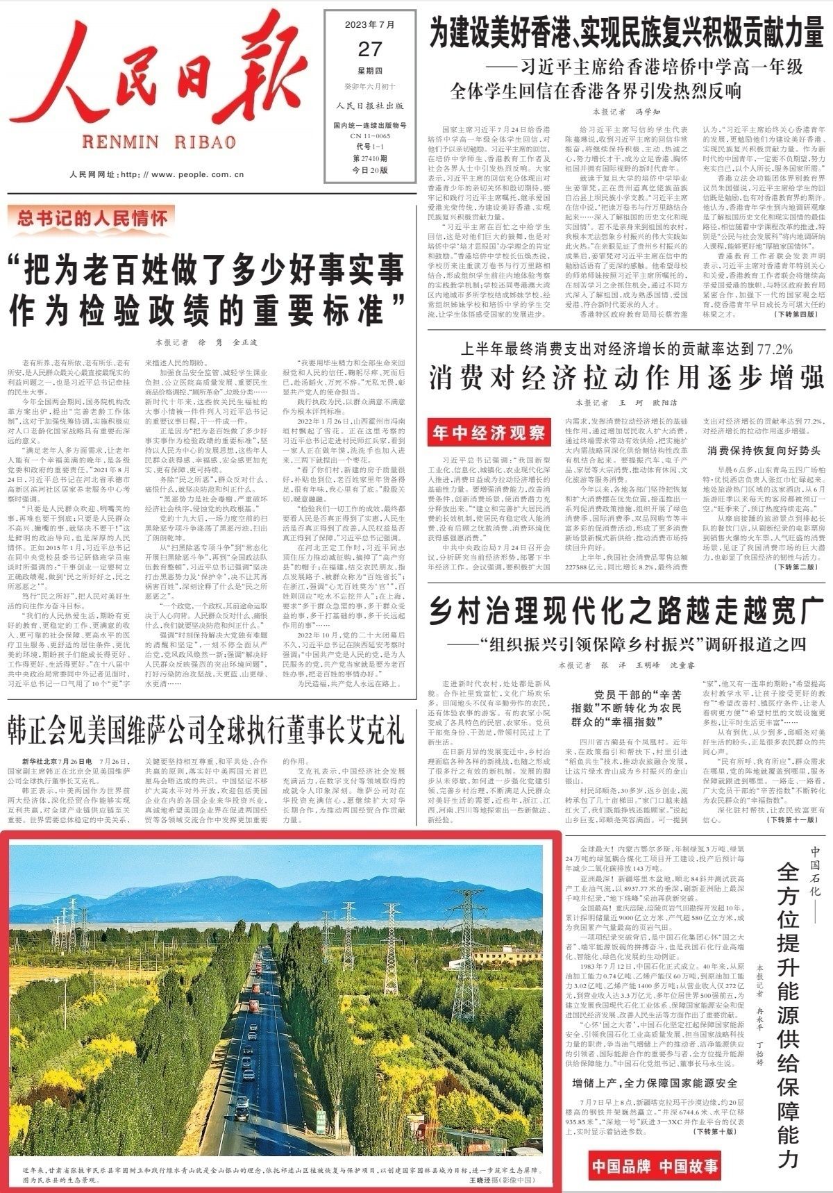7月27日,《人民日报》头版刊载甘肃省张掖市民乐县的生态景观图片。