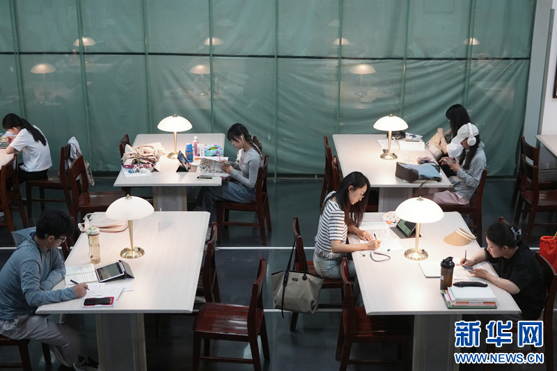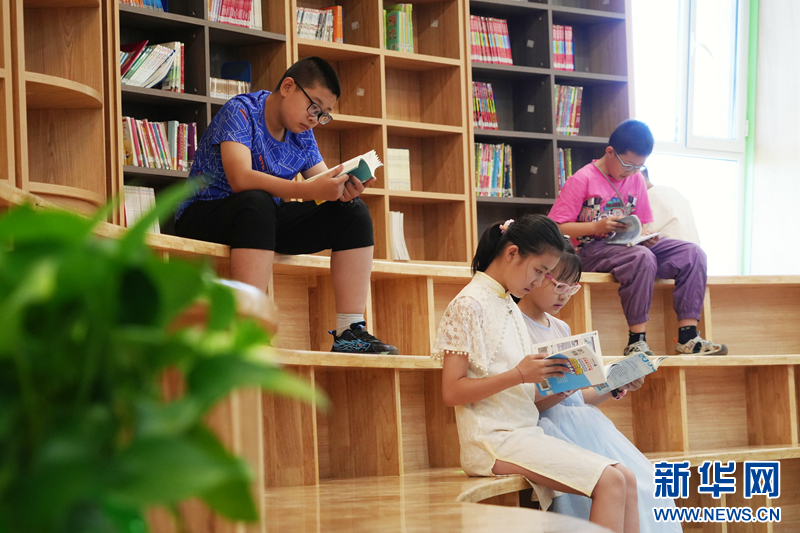 近日,在甘肃省金昌市,图书馆成了暑期热门打卡地。许多学生来到金昌市图书馆阅读书籍,在书香中度过快乐假期。新华网发(张宏斌 摄)