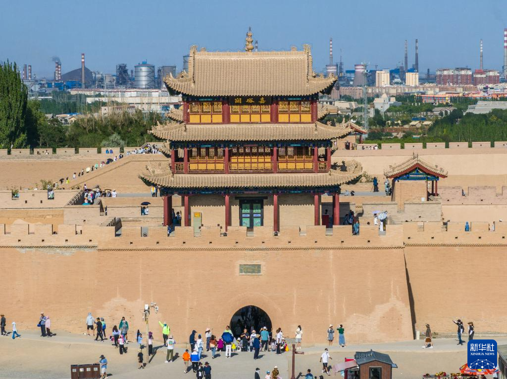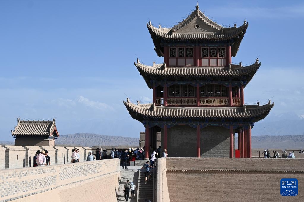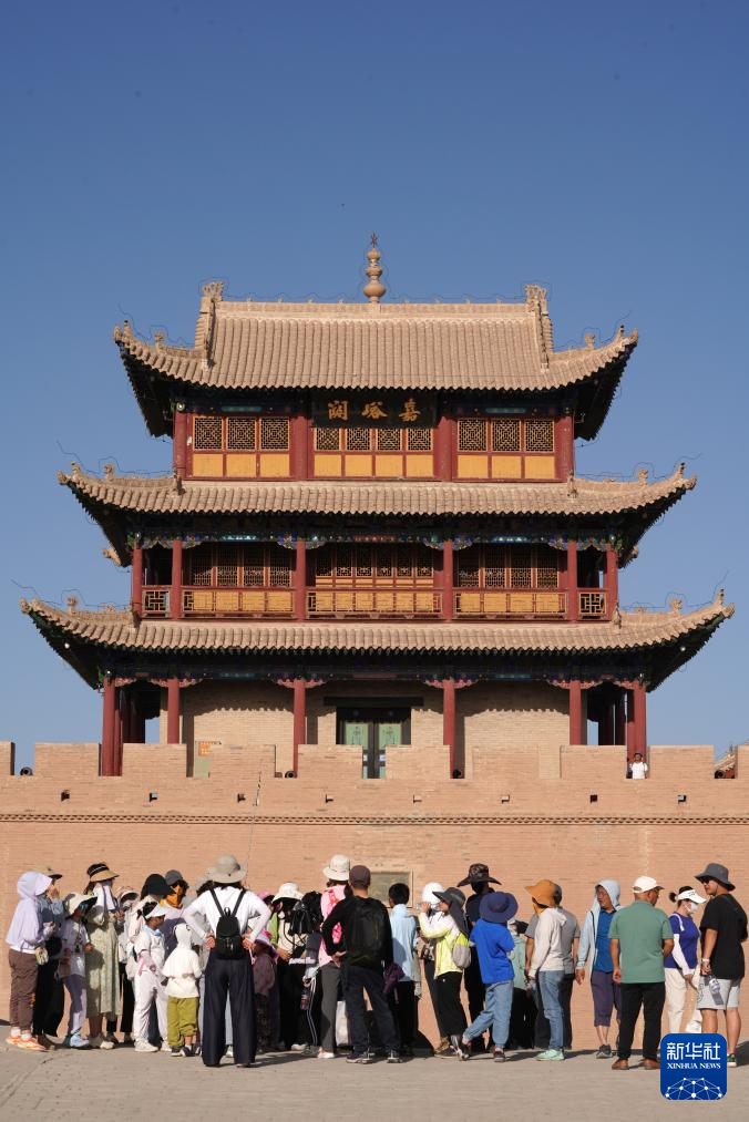 8月7日,游客在嘉峪关关城参观游览。新华社记者 马宁 摄