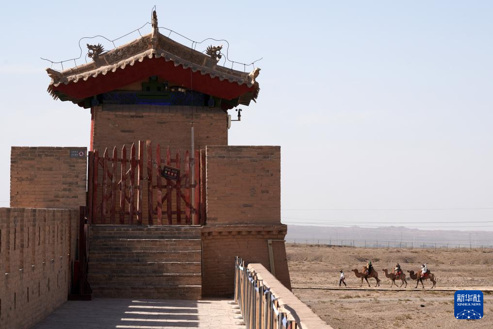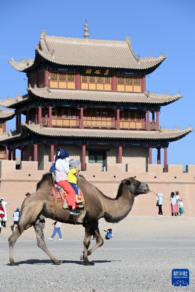 8月7日,游客在嘉峪关关城外骑骆驼。新华社记者 范培珅 摄