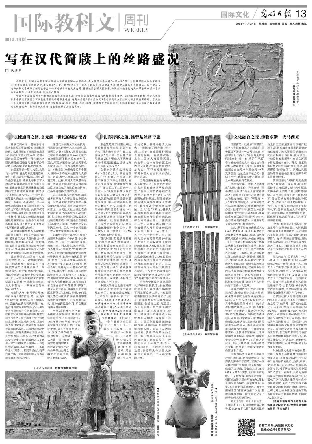 悬泉置是两汉时期丝绸之路的重要接待机构,汉简中也多有“西方来客众多”“道上过客众多”的记载,那么除了康居使者,还有哪些人不畏路途艰辛千里迢迢通过丝绸之路在与大汉交流交往?
