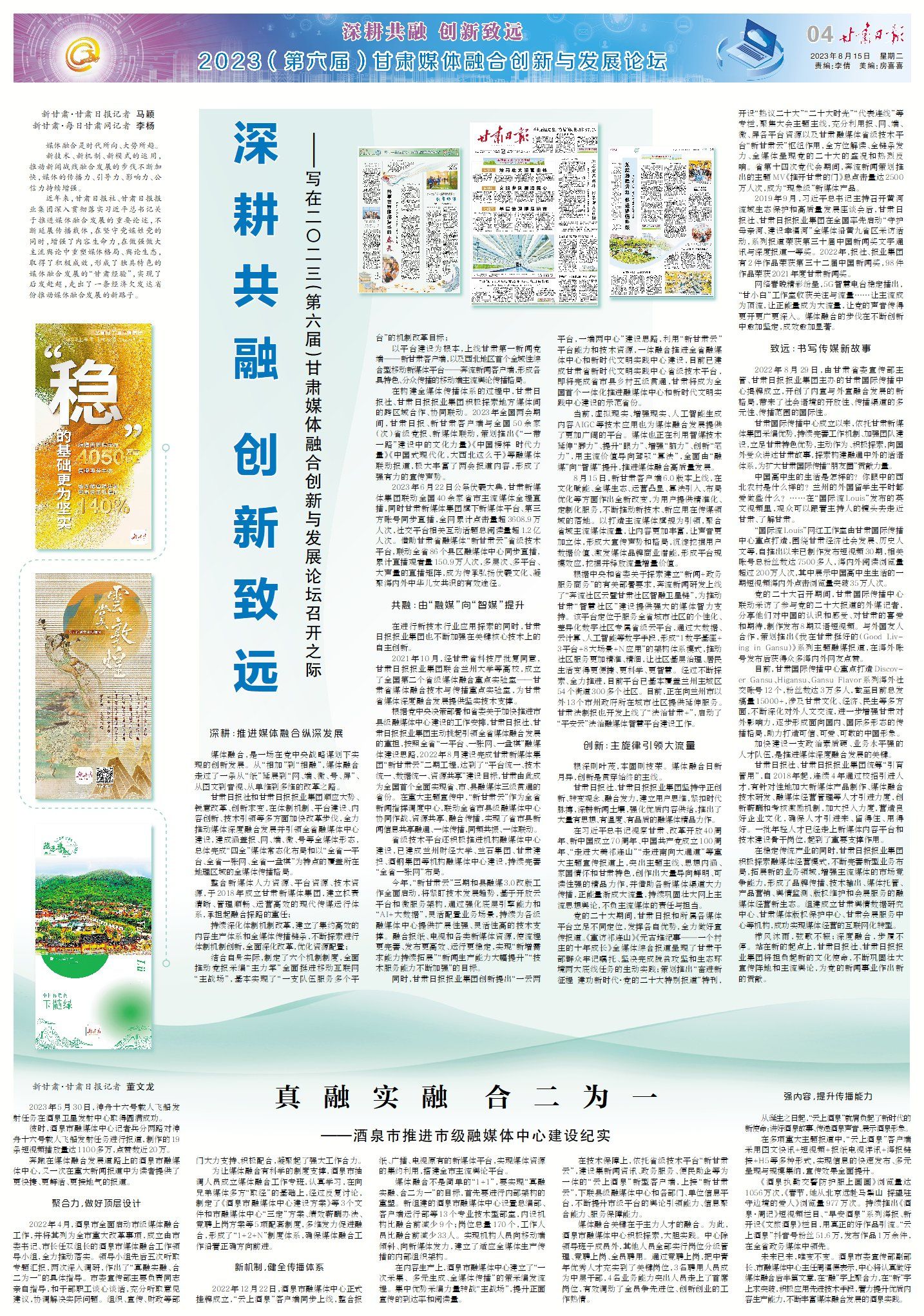 甘肃日报社、甘肃日报报业集团坚持守正创新、转变观念、融合发力,建立用户思维,紧扣时代脉搏,深耕新闻土壤,强化优质内容供给,推出了大量有思想、有温度、有品质的融媒体精品力作。