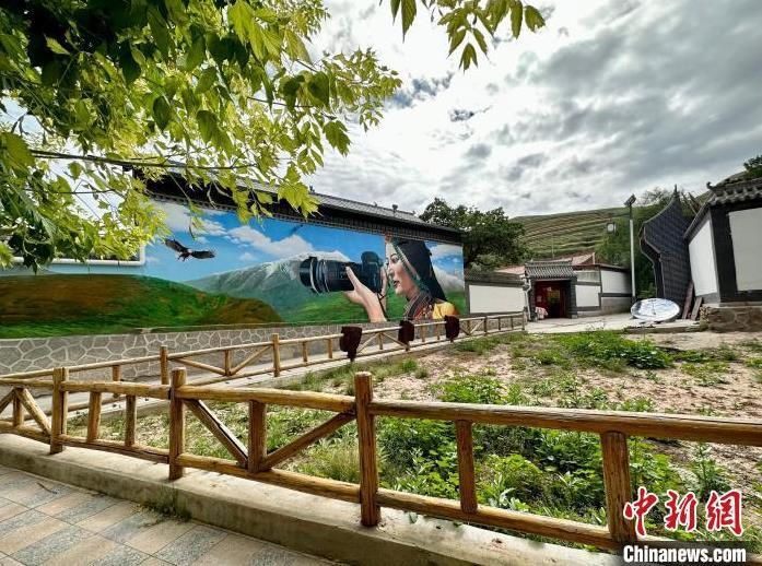 8月15日,甘肃甘南州藏族村落,墙面用藏族风情画点缀,异域风情十足。中新社记者 闫姣 摄