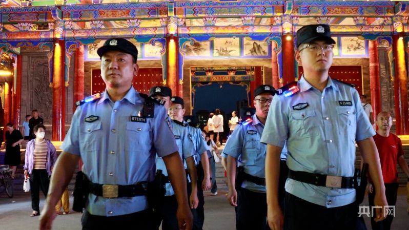 民警辅警在甘泉公园等人员密集场所开展巡逻防控(央广网发 张掖市公安局甘州分局 供图)