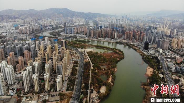 2023年4月上旬,航拍兰州春色,黄河穿城而过。 李亚龙 摄