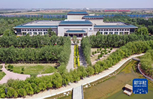 这是绿树环绕下的甘肃省武威重离子中心(2023年6月16日摄,无人机照片)。新华社记者 郭刚 摄