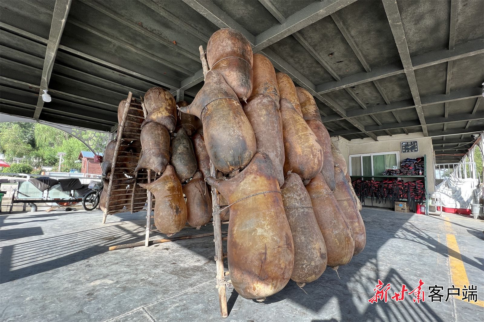 初步工作完成后,通过外部、内部两次扎住头尾、肚脐、四肢,然后用嘴给羊皮里吹气使皮囊膨胀,这样既保证了湿度,又确保了吹好的皮囊圆圆鼓鼓。“食盐半斤+清水少许浸泡+半斤胡麻油”当完成这一步后,就是将皮的颈部、四肢用力扎紧,晒于烈日之下等到皮囊一般呈红褐色时,羊皮筏子也便制作而成。