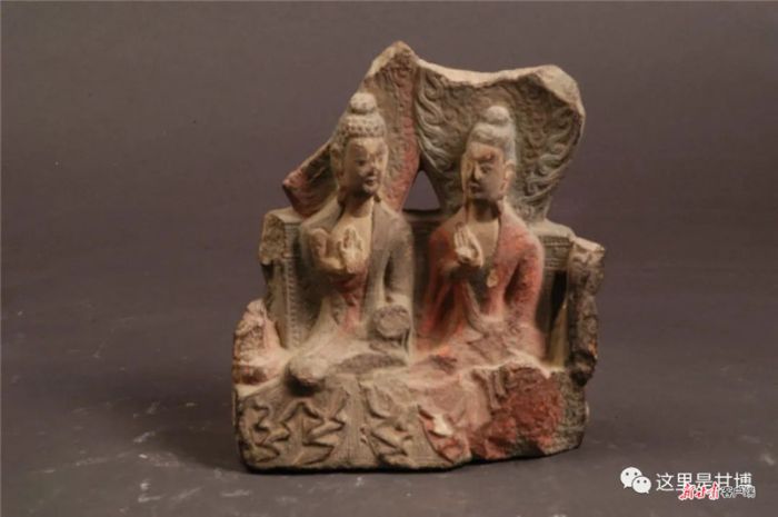 彩绘石雕释迦多宝佛像(北魏 甘肃省博物馆)。