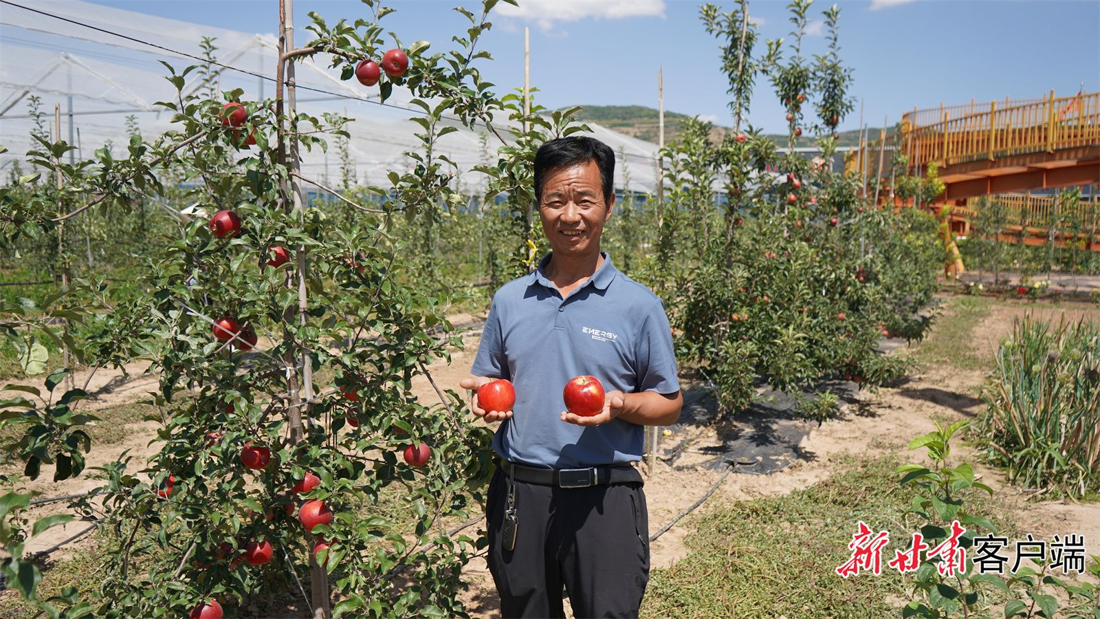 吴三强和他种植的早熟苹果。文中图片由新甘肃·甘肃日报通讯员 胡继万 摄
