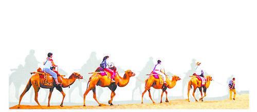 骆驼这种温顺而庞大的家伙,只是在烈日炎炎中一次次跪下前腿接驳游客,它自然也不会看红绿灯,这些都是人要操心的事儿。