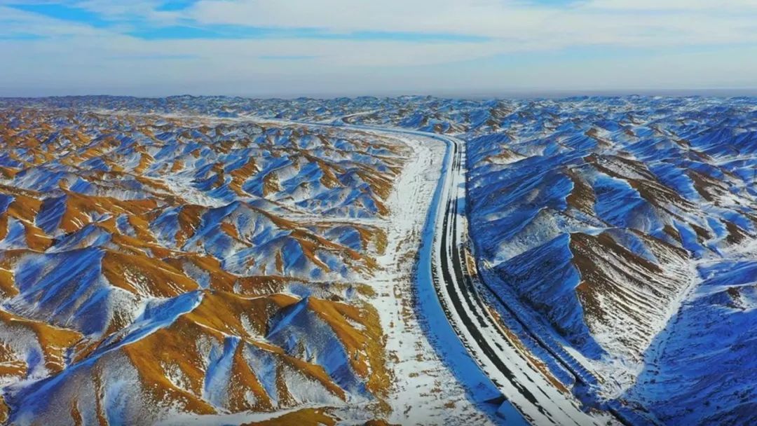 近处是孤寂的戈壁,远处可见祁连山脉上的皑皑白雪,川流不息的河谷和经过历史沉淀留下来的石窟艺术相呼应,形成了河西走廊上最美的一幅天然壁画。