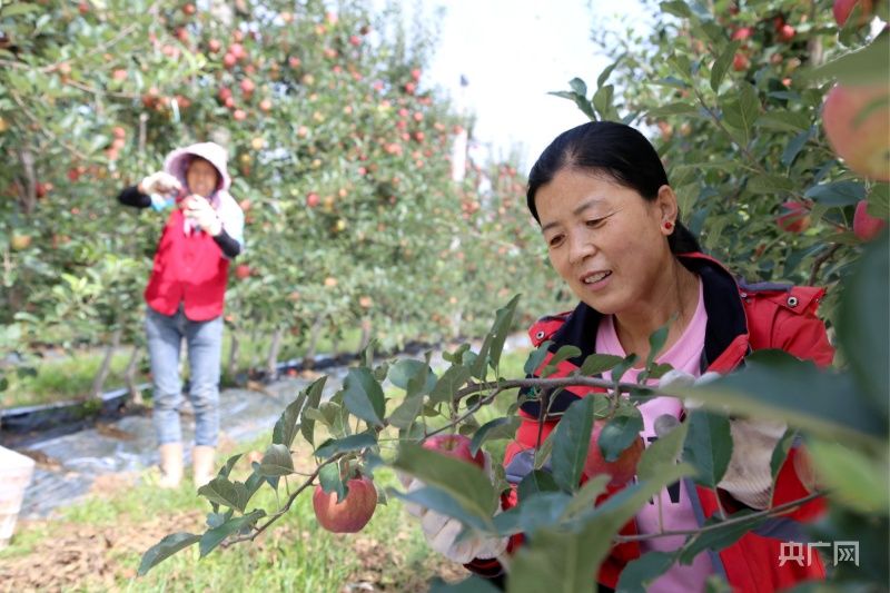 工作人员正在采摘苹果(央广网发 盘小美 摄)