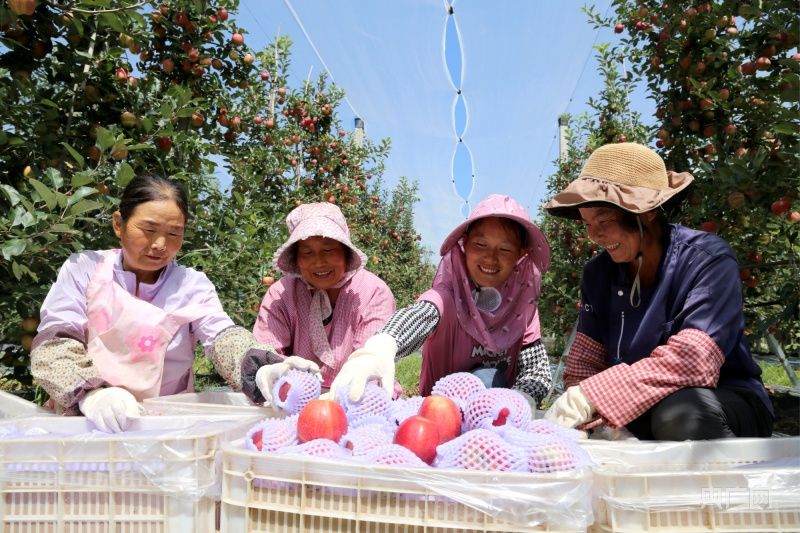 初秋时节,位于董志镇寺里田村的庆阳居立现代化苹果示范园里,矮化密植的嘎啦苹果树整齐排列,个大饱满、色泽艳丽的果实缀满枝头,淡淡的果香沁人心脾。工人们分工有序,正忙着采摘、分拣、搬运。这些新鲜的苹果经过包装后,将发往上海、深圳等城市。