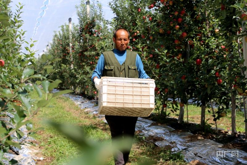工作人员正在搬运刚采摘的苹果(央广网发 盘小美 摄)