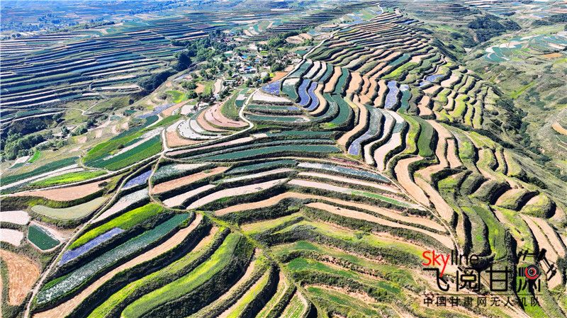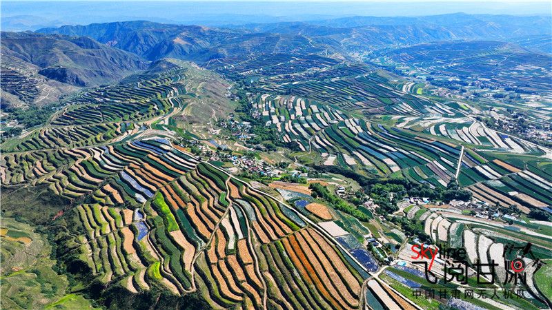 秋意渐浓风光好,秋收在望五谷香。榆中县新营镇的多彩梯田镶嵌在山间,层层叠叠,流光溢彩,从山脚一直延伸至山顶,像一条条浮动的多彩缎带,呈现出一幅美丽画卷,美不胜收。