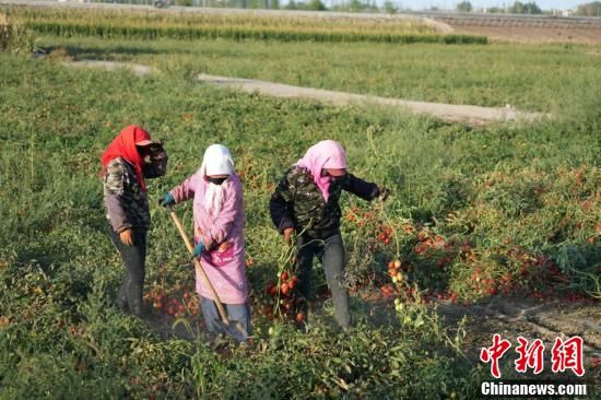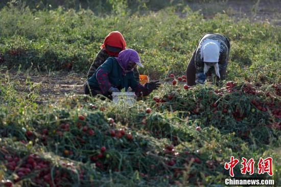 9月2日,农民在甘肃省张掖市高台县采摘番茄。