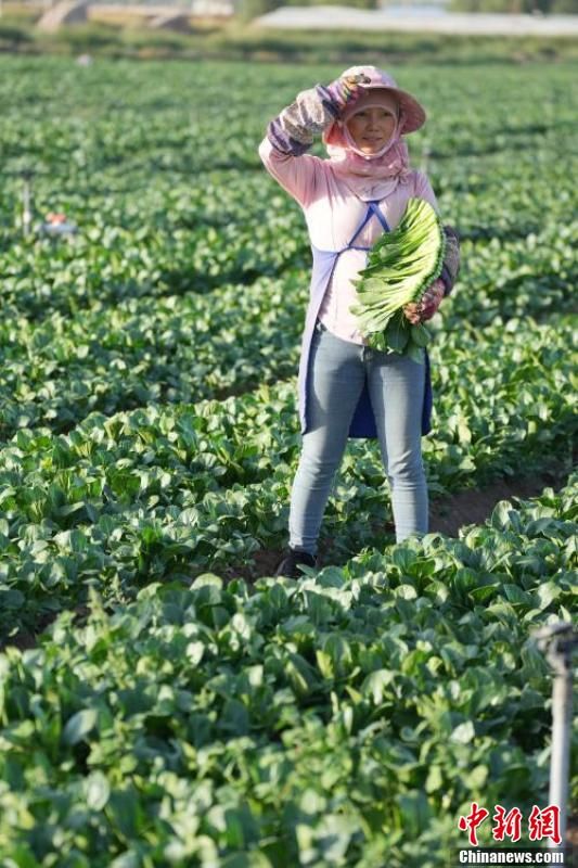 9月2日,菜农在甘肃省张掖市高台县采摘供港蔬菜。近年来,当地利用戈壁资源,做精特色产品,促进农业提质增效,助力乡村振兴。据了解,高台县已建成粮食作物、供港蔬菜、高原夏菜、玉米制种、精品辣椒、设施西瓜等规模化特色产业基地17个,带动发展粮食36万亩、蔬菜18万亩、制种20.68万亩。