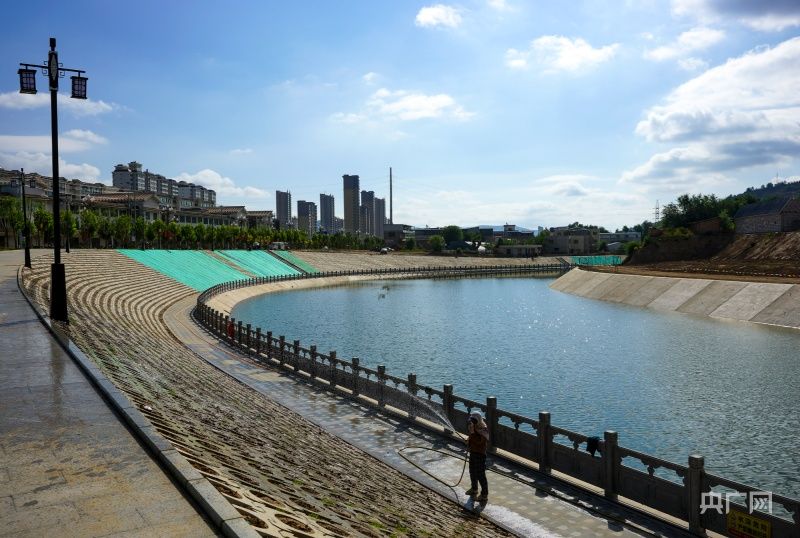 初秋时节,甘肃省定西市通渭县正在建设中的城区牛谷河西段生态治理工程雏形初现,昔日的臭水沟变身靓丽风情线,成了市民休闲、锻炼、娱乐的好去处。