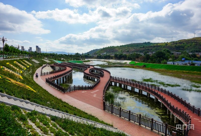 如今,在通渭县,牛谷河城区段与滨水休闲公园、书画公园、红军长征公园等交相辉映、相得益彰,展现出水清、岸绿、河畅、景美、人和的美丽幸福河湖画面,同时工程防洪和生态效益日益凸显,城市品位形象得到极大提升。