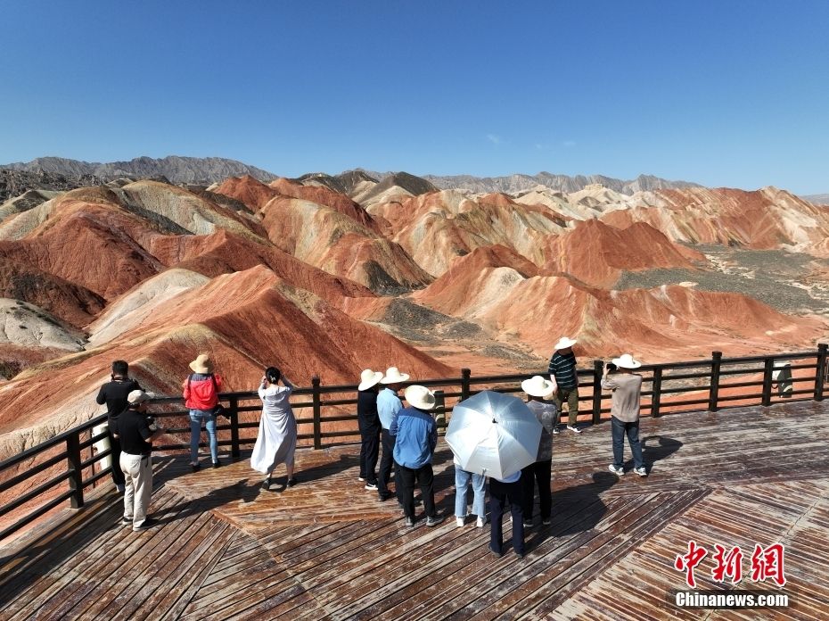 9月3日,航拍甘肃省张掖市七彩丹霞景区。9月3日,甘肃省张掖市七彩丹霞景区吸引游客。9月3日,游客在甘肃省张掖市七彩丹霞景区参观游览。9月3日,航拍甘肃省张掖市七彩丹霞景区。
