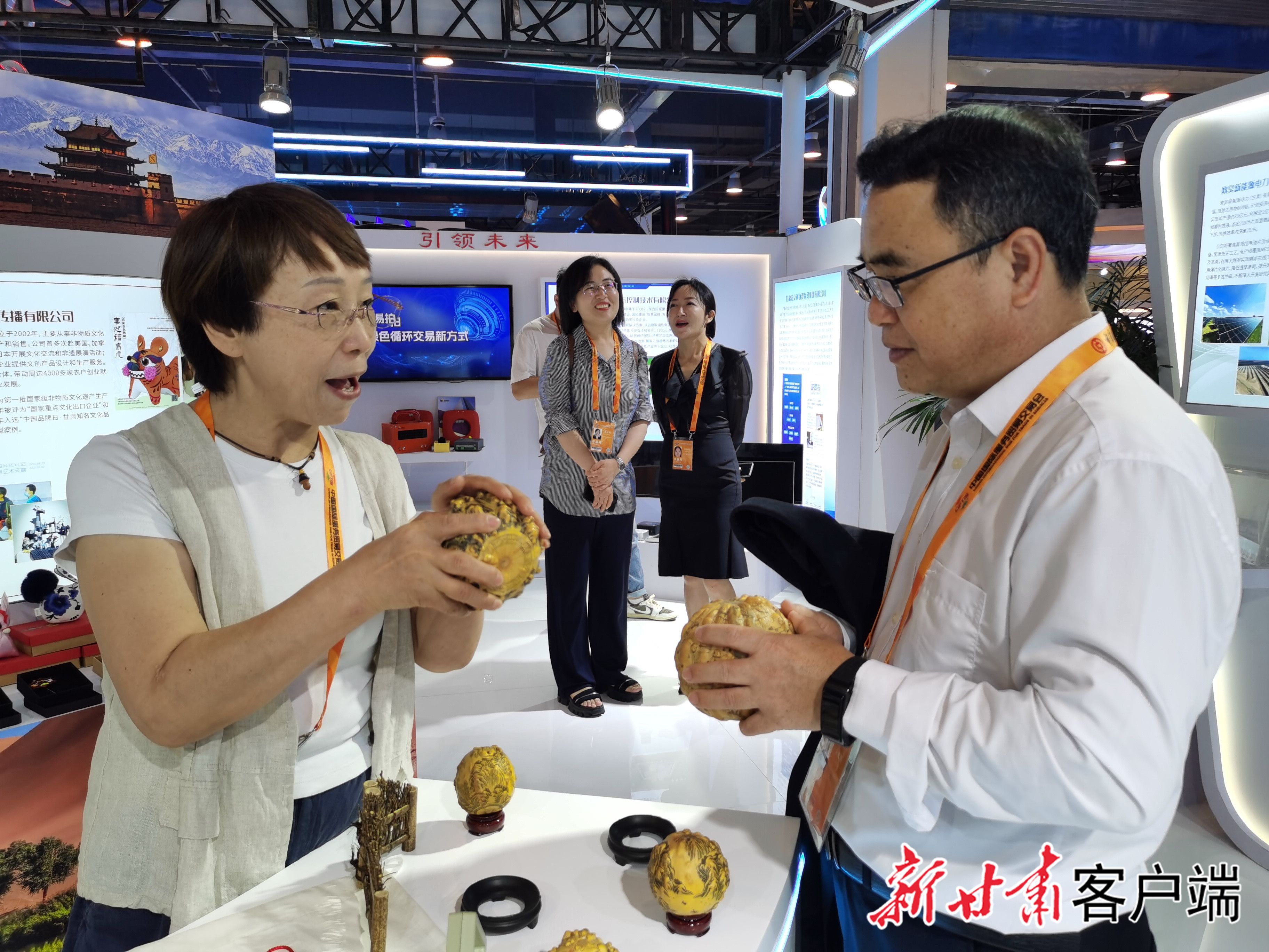 为充分展示甘肃服务贸易发展成果,我省在国家会议中心搭建了100平方米特装线下展馆。开幕当天,兰州雕刻葫芦非遗传承人现场表演葫芦雕刻艺术,甘肃中医药大学附属医院医护人员表演了敦煌脐秘功,甘肃平凉太极传承人表演了太极拳。我省掐丝珐琅壁画、飞天雕漆、庆阳香包、文溯阁《四库全书》影印本和《读者》杂志为国内外嘉宾奉献了一场文化艺术盛宴,为国内外客商打开了一扇了解甘肃的窗口。我省纳米微肥、智慧交通防撞等先进技术,深受国内外客商的青睐,部分采购商现场表达了合作意向。国内外客商对我省新能源领域取得的成就和巨大的市场机遇,表现出了极大的关注,纷纷驻足观看太阳能光伏板、单晶异质结双面双玻组件等新能源产品,并与企业深入洽谈。我省国内外领先的重离子加速度模型,吸引了大量观众,基因检测仪器前面排起了长长的队伍。