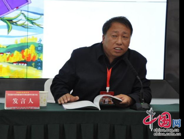 甘肃省农民书画研究会终身名誉会长高存弟代表这次活动的承办方甘肃省农民书画研究会致辞。他说,甘肃是享誉世界的敦煌壁画的故乡,敦煌文化给甘肃提供了重要的文化根脉。通过追根溯源,守正创新,使千年的壁画艺术在新时代得到创造性转化、创新性发展。以敦煌文化的丰富内涵、传统文化营养,提升农民画的品位和影响力,更加突出地域特色和创作亮点,就是举办这次研讨会的初心和目的所在。此次研讨会的举办,有助于甘肃省农民画作者进一步增强文化自觉,坚定文化自信,在乡村振兴和富民兴陇的进程中创作出更多精品力作。