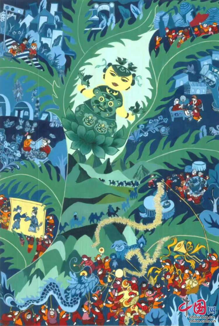 甘肃的农民画是在全国一派大好的形势影响与带动下开始发展的,特别是陇南市成县红川镇的农民画曾经成为甘肃农民画的一张名片。2022年8月4日到7日,甘肃农民画以一个别样的姿态走出了国门,在被称为“世界十字路口”的纽约时代广场百老汇1560号塔楼的大型电子屏幕上连续循环播放四天,引起了国际性的关注。