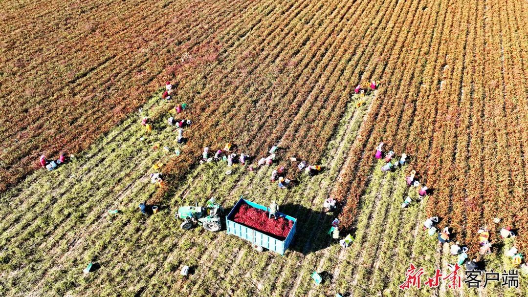 10月14日,张掖市甘州区上秦镇安里闸村辣椒种植基地的560亩订单辣椒喜获丰收。新甘肃·甘肃日报通讯员 杨永伟