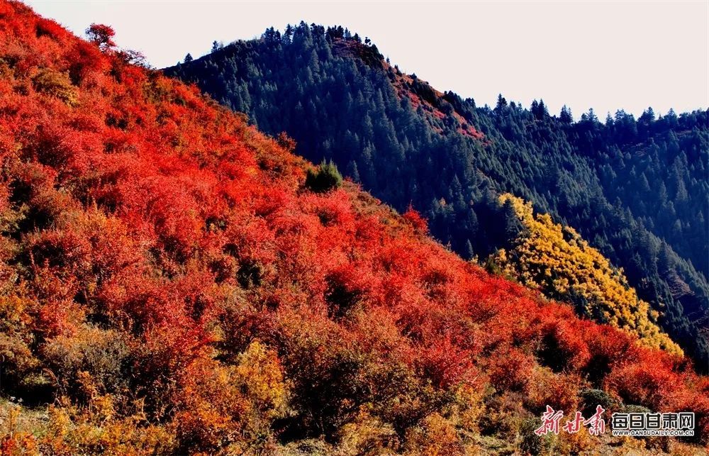 金秋时节,祁连山漫山遍野的红叶次第绽放,山峰峡谷的千沟万壑五彩缤纷,一片斑斓。新甘肃·每日甘肃网通讯员 成林