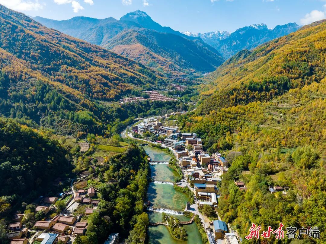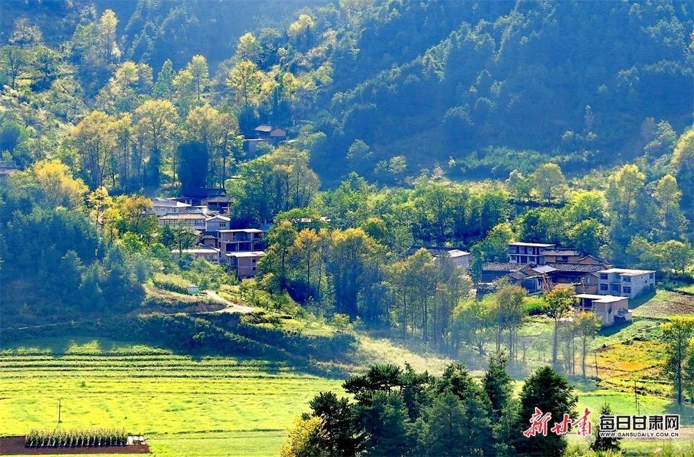 金秋十月的康县山林,色彩斑斓、清泉汩汩,美丽乡村散布于山间的莽林幽谷之中。新甘肃·每日甘肃网通讯员 黄培军