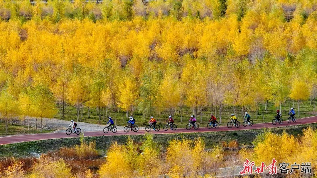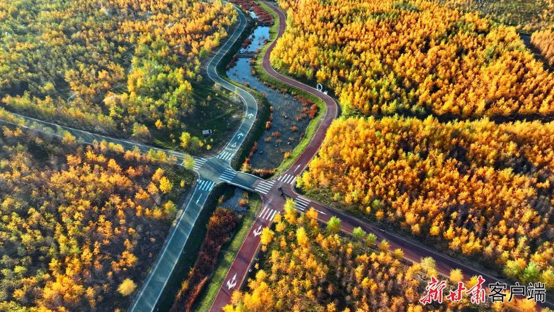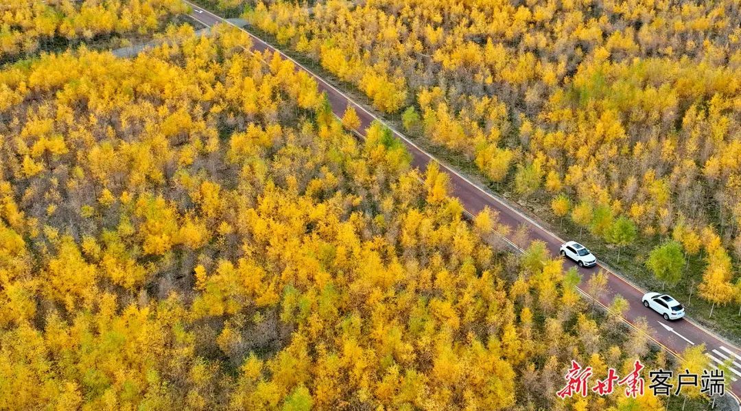 10月16日,张掖奥林匹克森林公园万亩人工胡杨林景区叠翠流金,美不胜收。新甘肃·甘肃日报通讯员 王 将 李自海