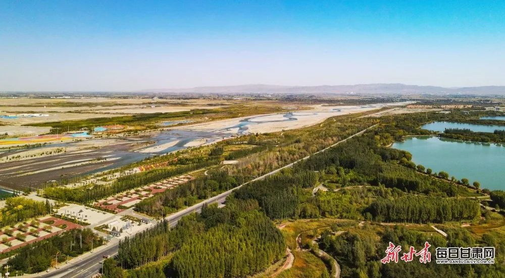 金秋九月,张掖市甘州区黑河两岸的树木渐渐由绿变黄,河水、蓝天、树林构成了一幅美丽的生态画卷。新甘肃·每日甘肃网通讯员 陈礼