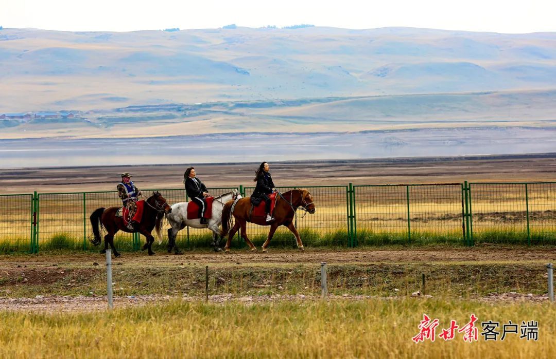 10月3日,游客在山丹马场骑马畅游金秋草原。新甘肃·甘肃日报通讯员 陈 礼