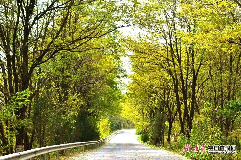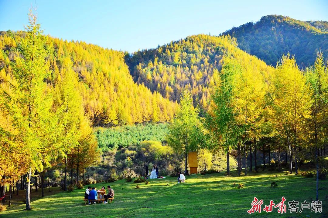 金秋十月,华亭市西华镇阳关村邓家塬社周边的树叶开始变成金黄色,呈现出最美的彩色,吸引了众多游客驻足赏秋拍摄。新甘肃·甘肃日报通讯员 白银宝