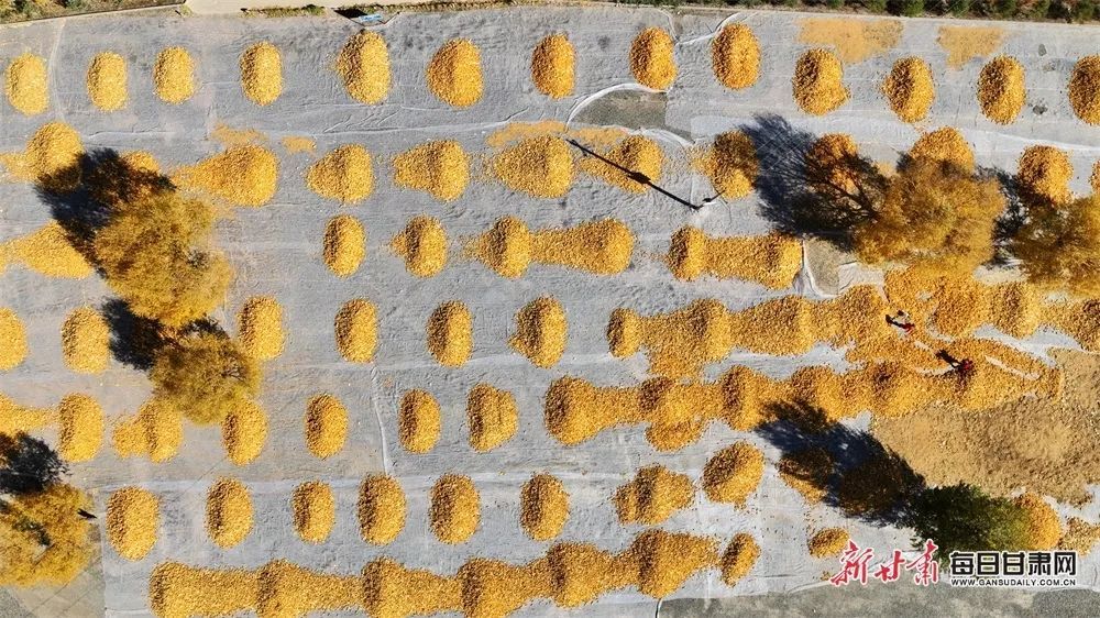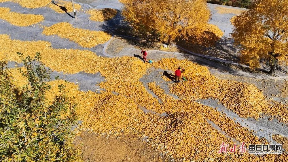 深秋时节,张掖市甘州区沙井镇的村民在晾晒玉米。新甘肃·每日甘肃网通讯员 成林
