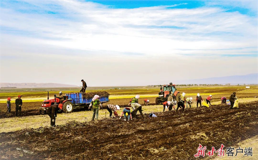 10月17日,民乐县南丰镇张连庄村黄芪种植基地,工人们忙着将黄芪采摘、分拣、装车。新甘肃·甘肃日报通讯员 王晓泾 张大有