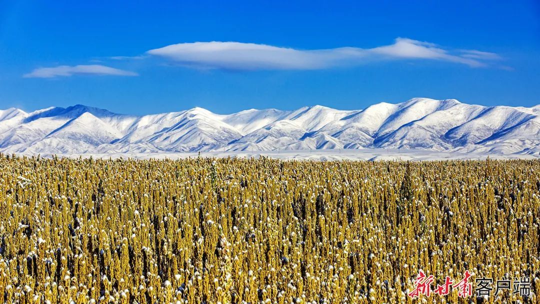 10月19日,金秋时节,天祝县松山镇万亩藜麦丰收在望,一场秋雪过后,藜麦色彩更加艳丽。新甘肃·甘肃日报通讯员 赵世鹏