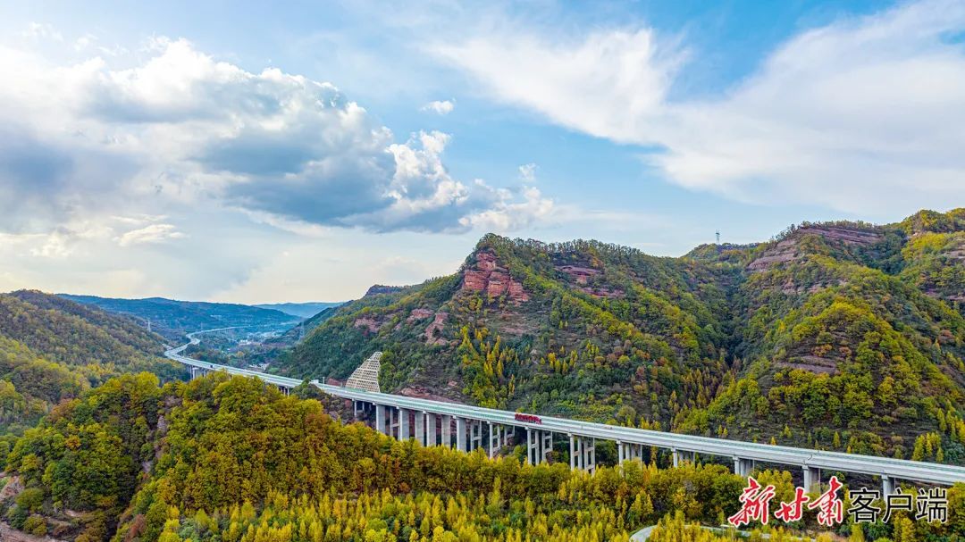 天水市秦州区的乡野间,碧空如洗、白云朵朵,梁峁沟壑间,层林尽染。新甘肃·每日甘肃网通讯员 高向明