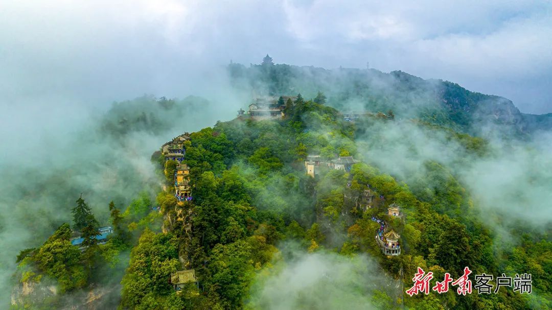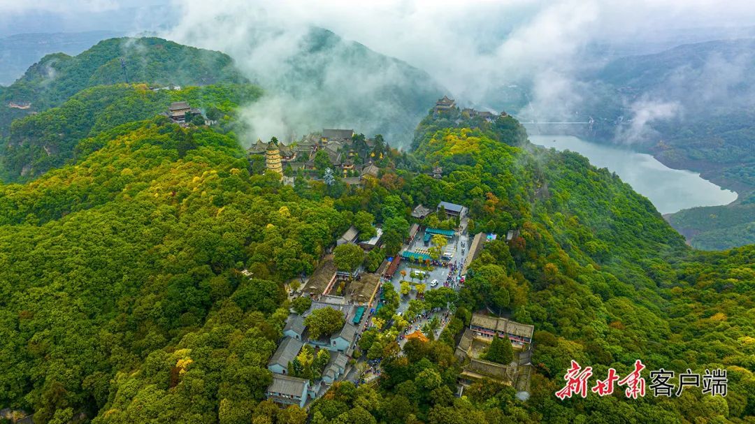 10月3日,平凉市国家5A级风景名胜区崆峒山云海缥缈,秋景如画,吸引了许多游客前来游玩。新甘肃·甘肃日报通讯员 黄蔚林