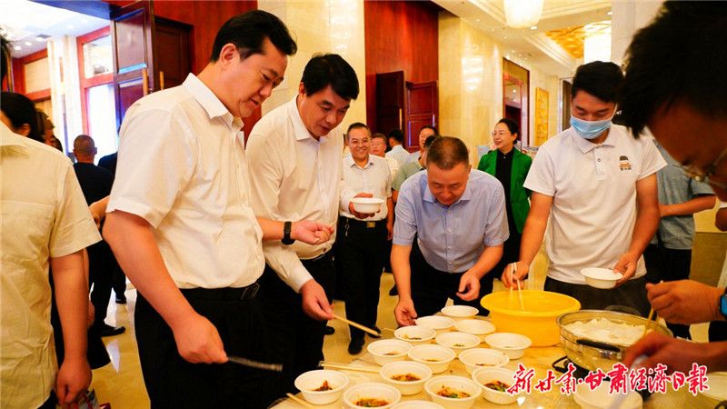 “定西宽粉”区域公用品牌发布会上与会嘉宾品尝定西宽粉。