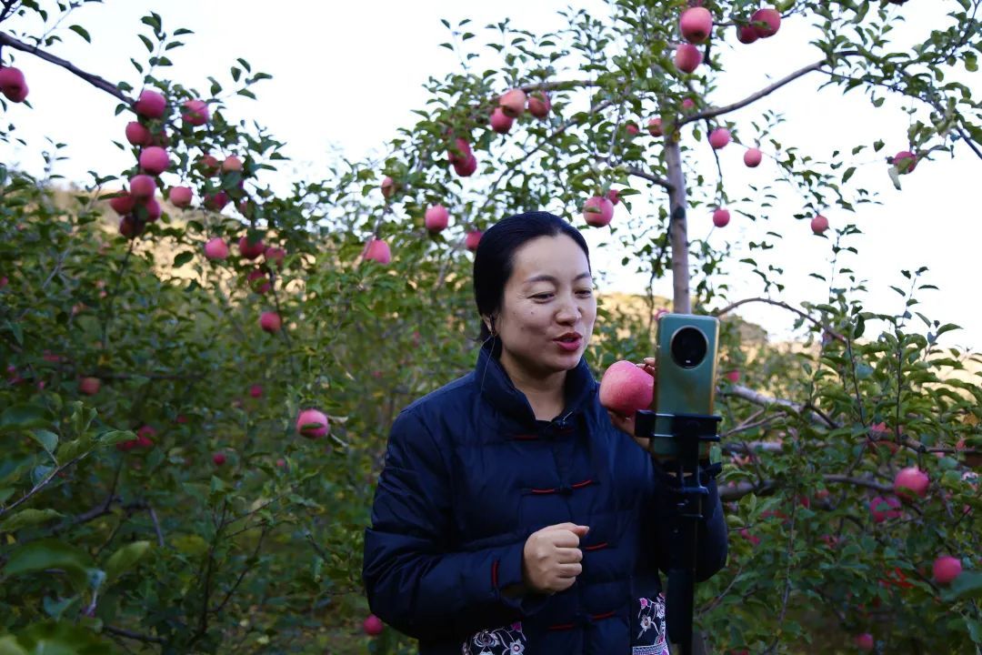 果园内,红彤彤的苹果挂满枝头,令人垂涎欲滴,主播刘彩虹正通过直播的方式向网友推荐西和当地苹果,直播间里互动频繁,也让网友们直观地了解西和苹果的生长环境和优良品质,同时拉近了主播与直播间观众之间的距离,吸引不少“铁粉”,纷纷下单购买。
