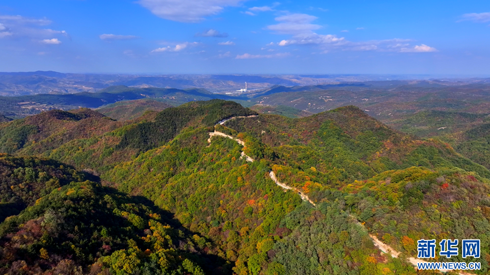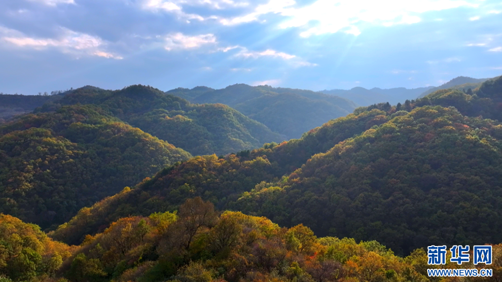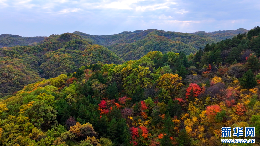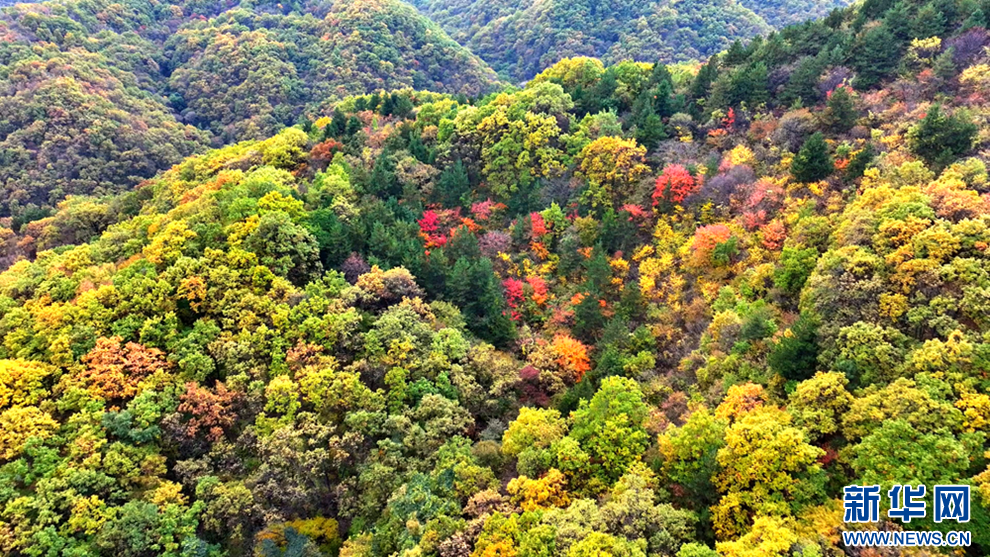 深秋时节,甘肃省平凉市崇信县的唐帽山层林尽染,群山叠彩,勾勒出一幅绚丽多姿的美景图。(图片:高亮 文字:关改琴)