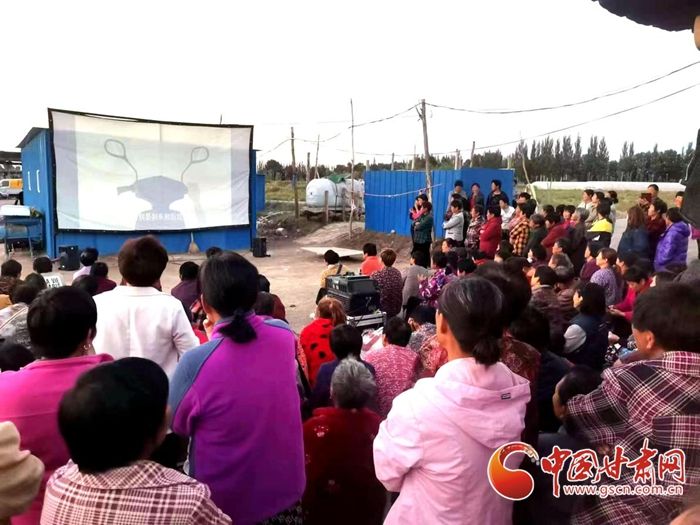 一台放映机、一块幕布,一场乡村电影的“放映室”就已搭建完成。夜幕降临之际,瓜州县河东镇五道沟村村委会文化广场聚满了村民,村民自带小板凳围坐着,激动地等候电影放映,一张张笑脸相映成趣,点亮了乡村美好“夜生活”。
