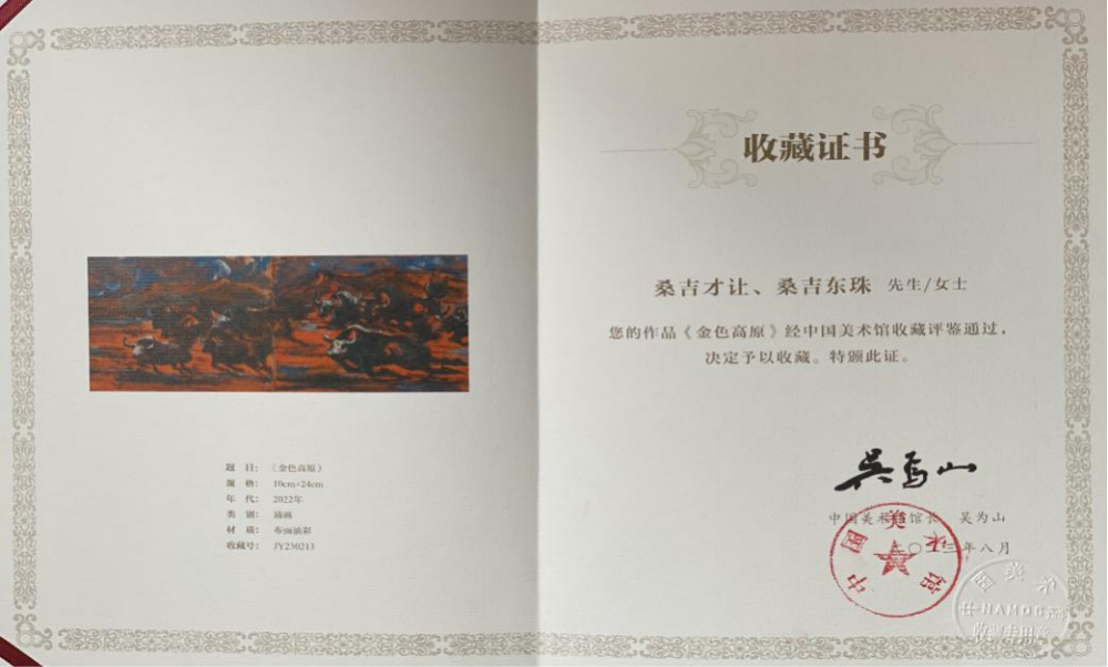 近日,省政府文史馆研究员桑吉才让油画作品《金色高原》被中国美术馆收藏。