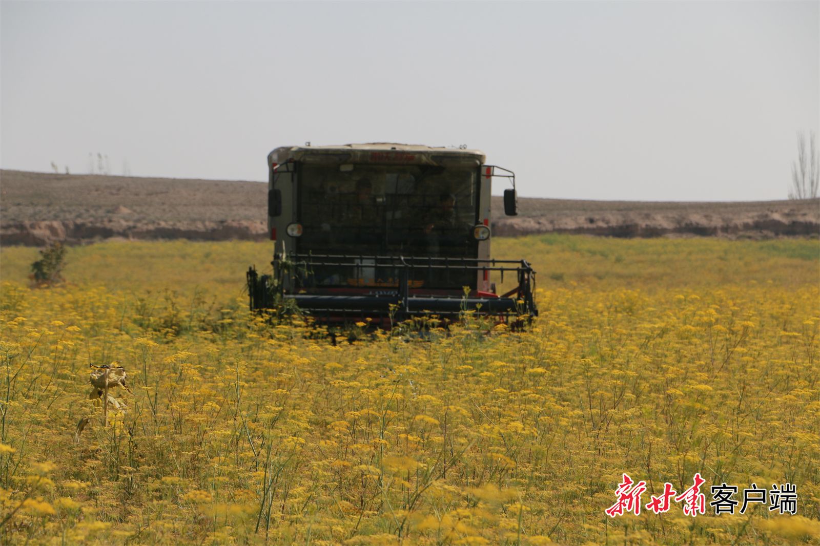 眼下,走进兰州新区秦川园区小茴香种植试验田,一簇簇顶生朵朵黄花的成熟小茴香在枝头随风舞动,散发出浓郁迷人的香气。随着机械的轰鸣声,籽粒饱满的小茴香迎来开镰收割,一派丰收的喜人景象。