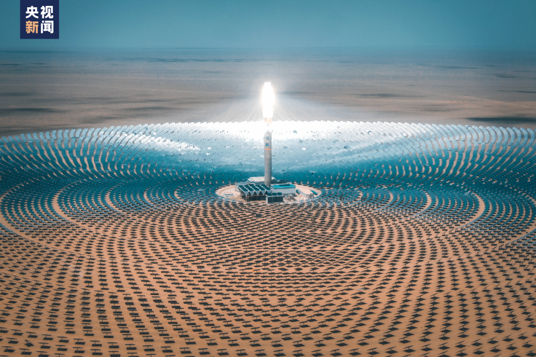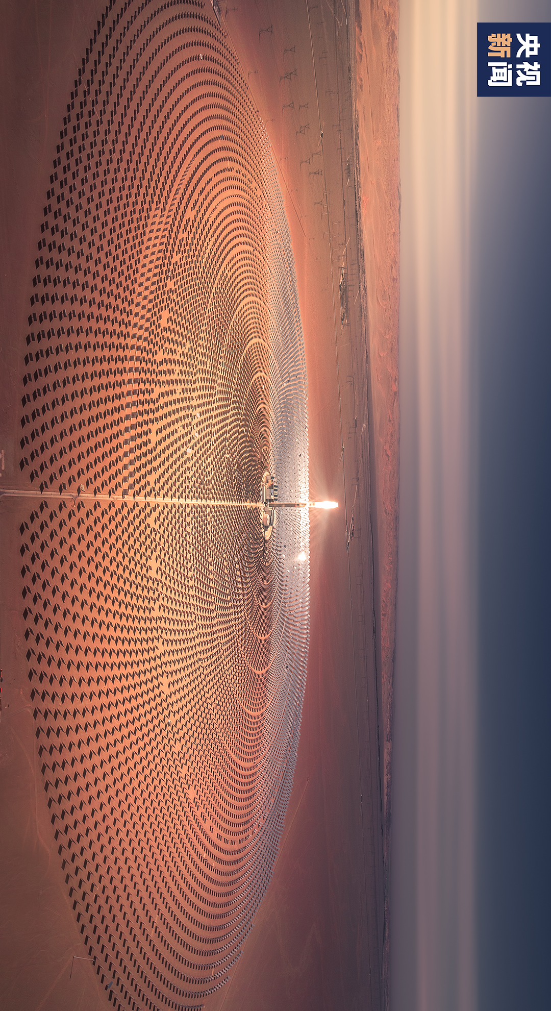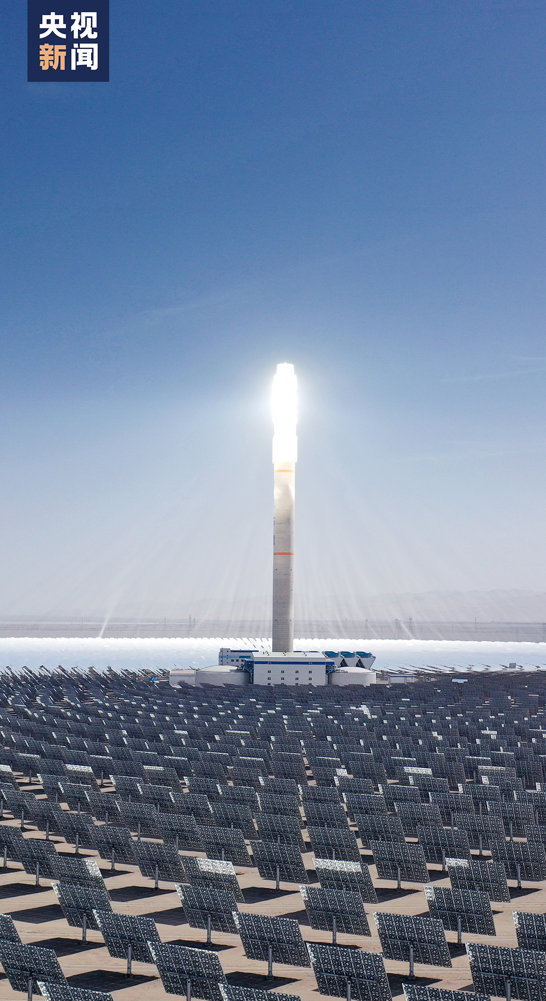 这里有目前建成规模最大、吸热塔最高、可24小时连续发电的100兆瓦级熔盐塔式光热电站,它也被称为“超级镜子发电站”。从上空俯瞰,宛若一个硕大的向日葵正在盛放。